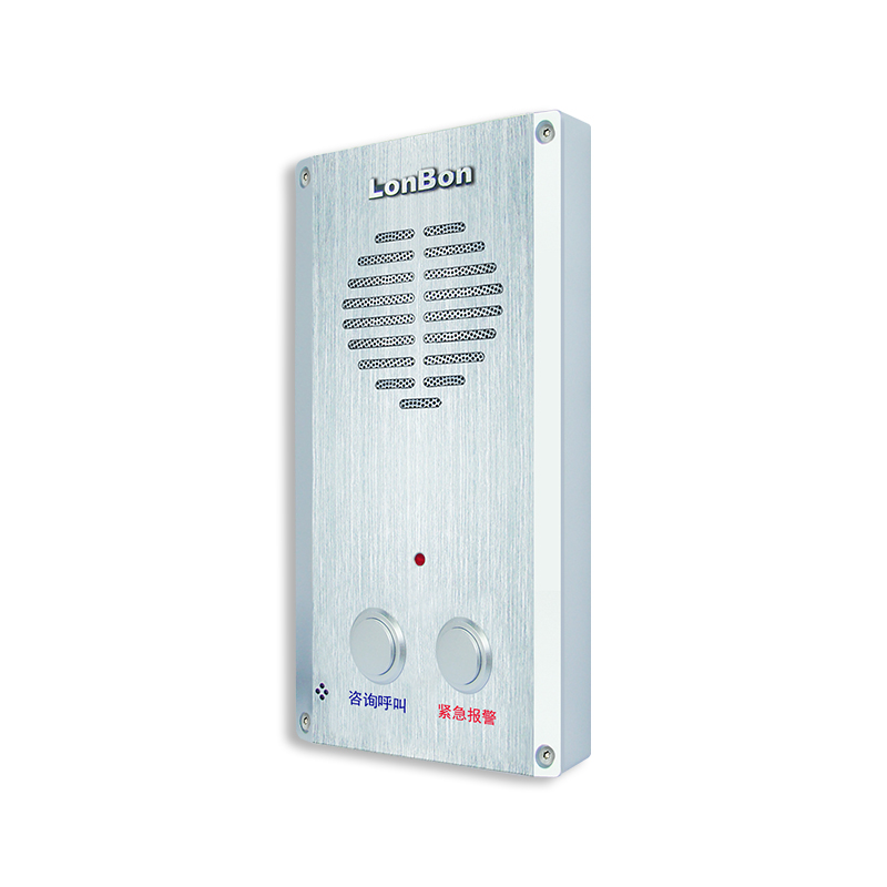 采用铝合金外壳,壁挂式安装在电梯轿厢内,可预装86盒(自备)上。