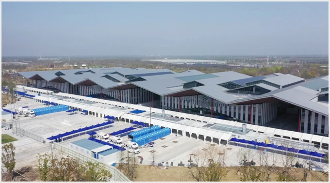 项目涉及14个展馆约42万平方米施工改造,总计可提供约5万张床位,成为上海目前规模最大的临时隔离收治点。