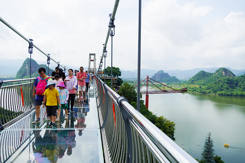 景点一:宝晶宫(天鹅湖游船、亿年溶洞、天宫玻璃桥)。乘船赏湖景,体验“船在湖中行,人在画中游”的美妙意境;游览素有"岭南第一洞天"之称的亿年溶洞,其大自然的鬼虎神功雕琢出气势非凡的岩壁、巨大的喀斯特洞天,让人流连忘返;体验世界最长喀斯特地貌湖景玻璃桥“天宫玻璃桥”,让人胆战心惊,又增添了游玩的趣味性和挑战性。