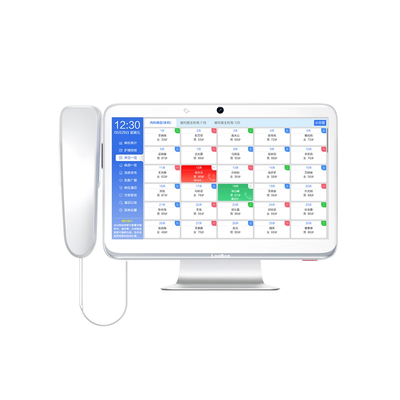 ? 采用13.3英寸触摸显示屏,含摄像头,支持1080P高清视频,桌面式安装在护士站。