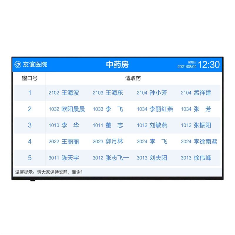 等候区叫号显示屏