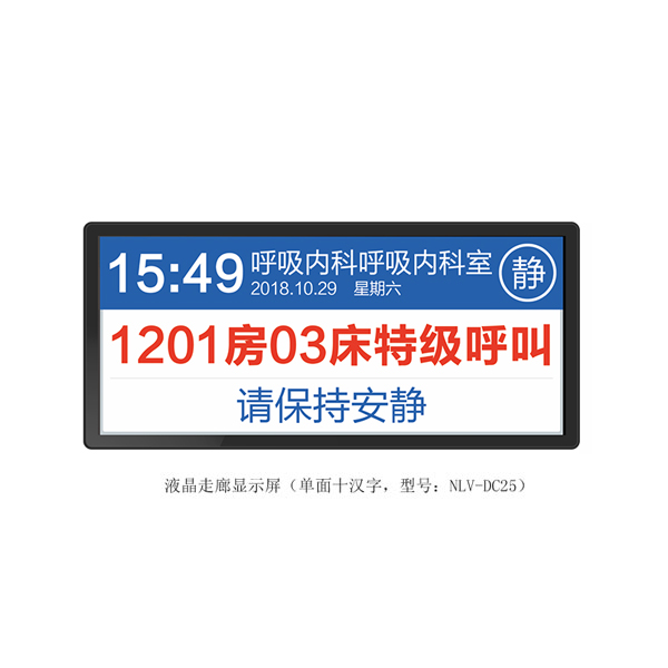 ? 采用25英寸液晶屏设计,金属边框,吊装在走廊过道上。
