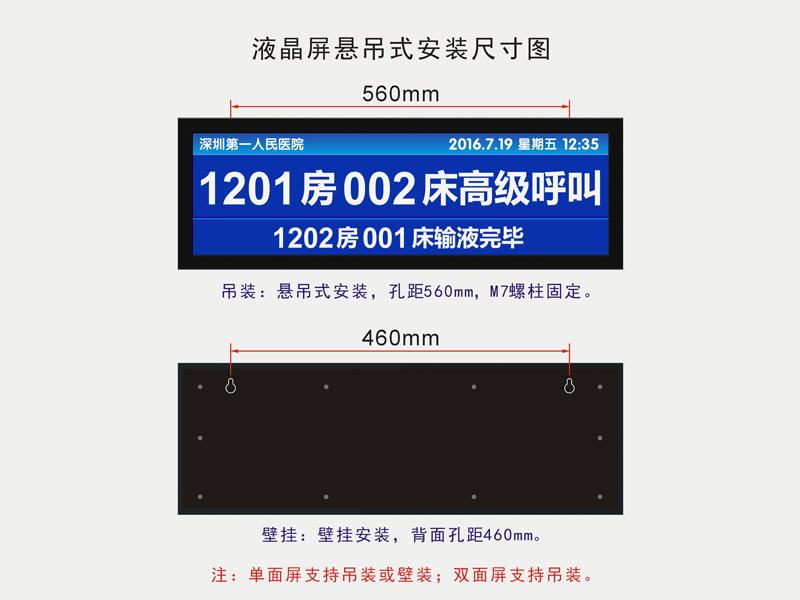 单面屏支持吊装或壁装;双面屏支持吊装。