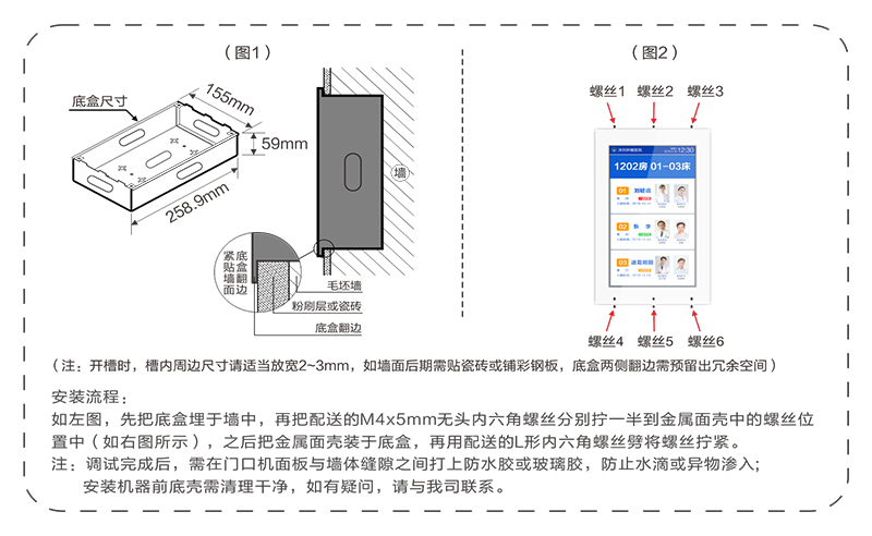 ? 采用10.2英寸高清液晶显示屏,嵌入式安装在病房门口。